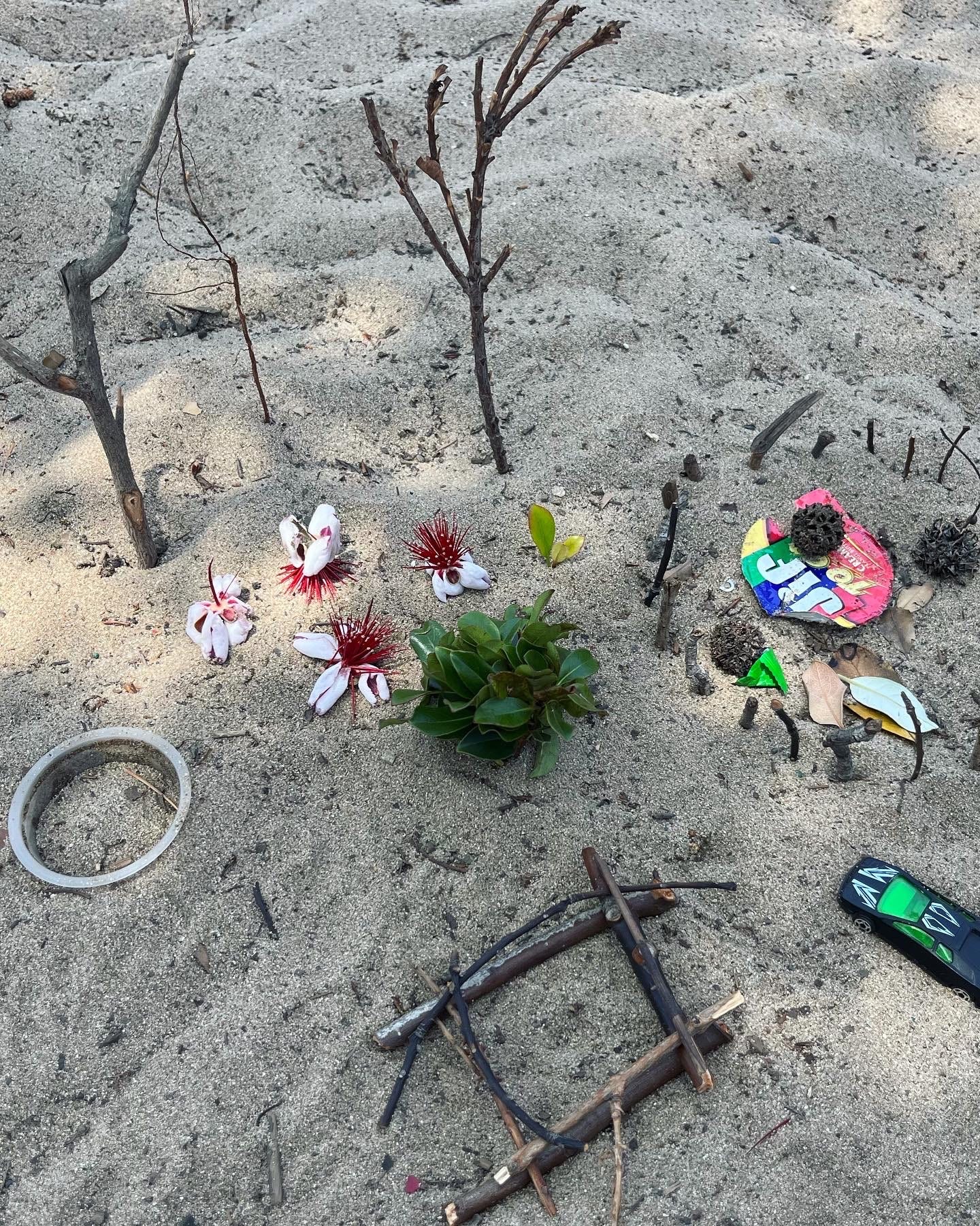 For those 15 minutes, I was the happiest I’ve been all day (or week?). Phone put away, fully immersed in a nature-building activity, while actually making a tiny difference in someone’s life (other than my daughter’s). At the end of it all, the boy declare us his “friends” (he had 6, including us, he counted) and asked me to text his nanny a photo of our little stick village.